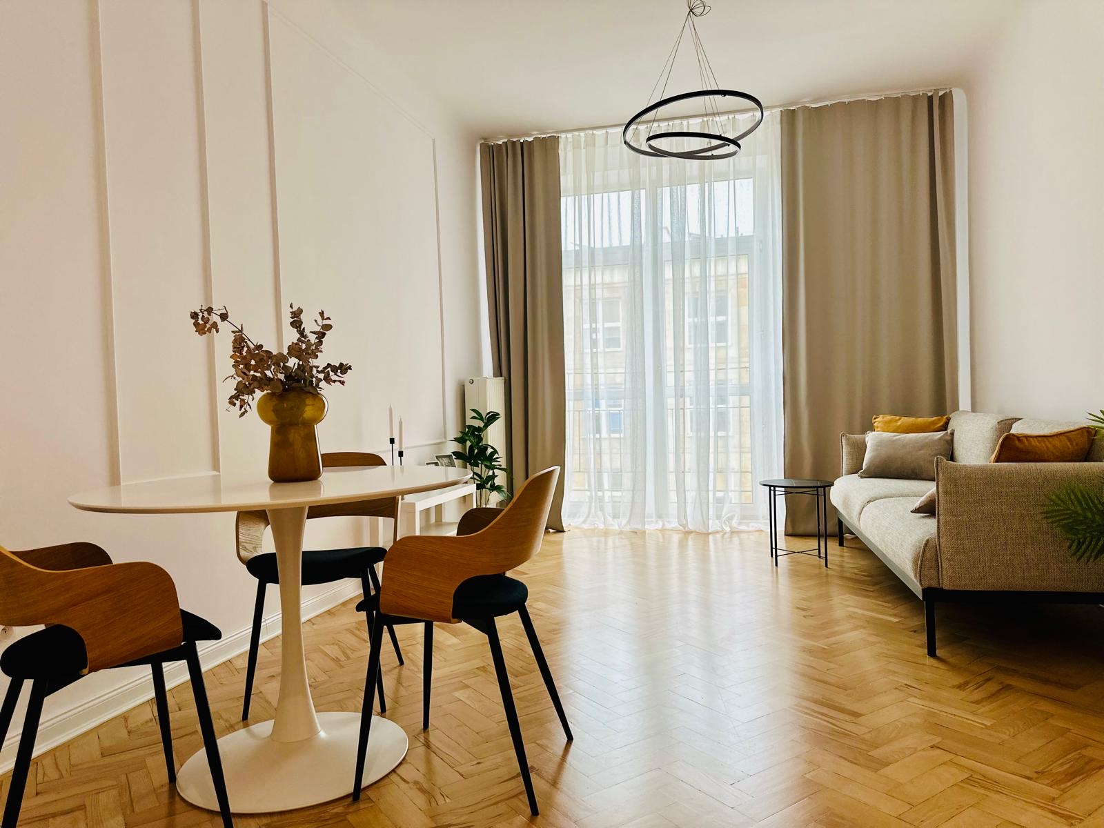 Mieszkanie znajduje się na 3 piętrze w 5-cio piętrowej kamienicy z windą. Do mieszkania przynależy piwnica. Około 3 lata temu przeszło remont generalny. Obecnie zostało odświeżone i jest gotowe do zamieszkania. Na podłodze w pokojach oraz przedpokoju parkiet, w łazience gres, a w kuchni panele. Wysokość mieszkania to aż 3m!